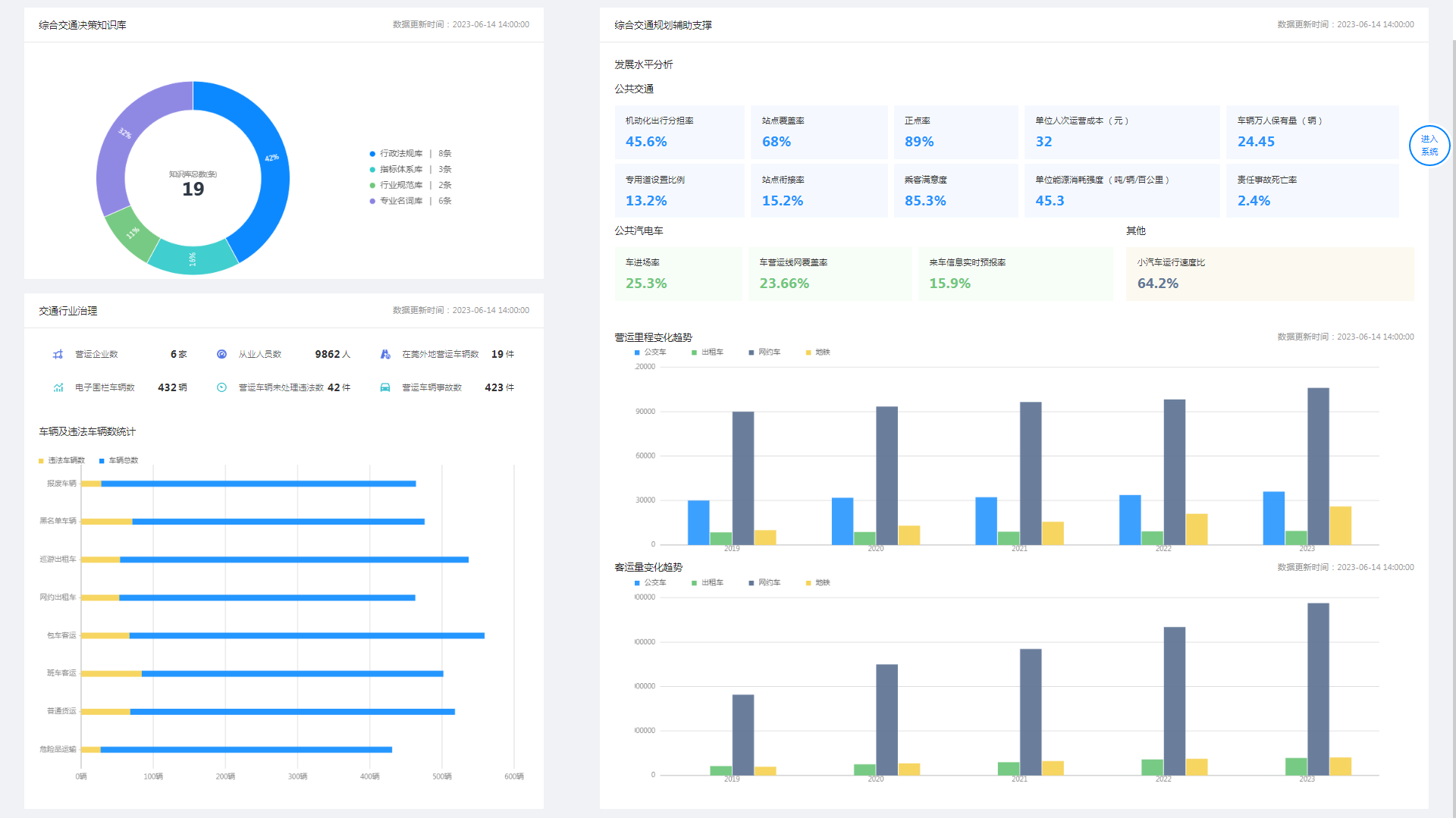 交通融合決策分析系統旨在結合一體化的綜合交通監測感知,關(guān)聯(lián)推演交通運行機理,支撐大規模復合網(wǎng)絡(luò )下的智慧決策能力。通過(guò)接入綜合交通數據,建立交通決策知識庫,在交通規劃輔助支撐和交通行業(yè)治理兩個(gè)方面建立決策分析子模塊滿(mǎn)足決策需求。