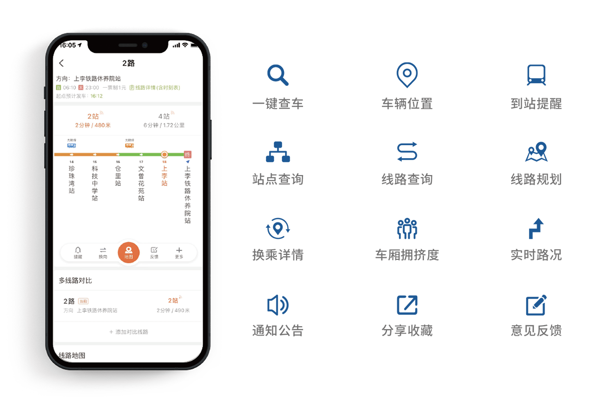掌上公交APP旨在為出行乘客提供及時(shí)、準確、便捷的信息化服務(wù)。用戶(hù)可登錄手機客戶(hù)端,選定所在的公交站點(diǎn)或想要乘坐的路線(xiàn)號,即可知道公交線(xiàn)路、站點(diǎn)、換乘、實(shí)時(shí)路況、樞紐指引天氣資訊等信息,隨時(shí)隨地了解公交信息,方便出行。